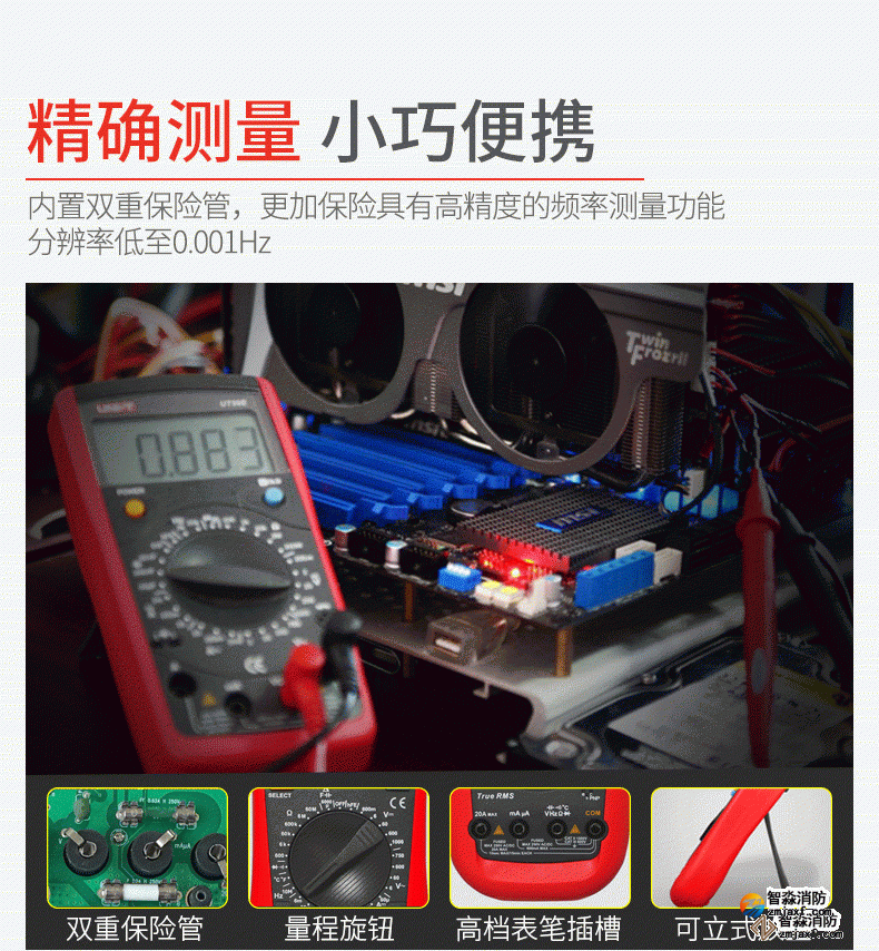 UT890系列全新一代手動量程數(shù)字萬用表。自動量程100mF大電容檔位,可快速測量音響功放,電源板等領(lǐng)域mF等級的大電容。該系列萬用表具有真有效值,可準(zhǔn)確進(jìn)行非正常交流信號的有效測量;全量程保護(hù),萬用表在電阻檔測試時不會由于誤操作接入高壓而引起燒表。在電子,家電,電器維修工作中,您需要一款耐用、可靠且精確的數(shù)字萬用表。