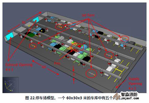 圖 22顯示了基本停車場尺寸和使用五個風扇的煙霧控制設計。四川消防檢測設備