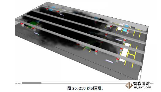 在500 s火災高峰期,煙霧全部充滿了停車場。