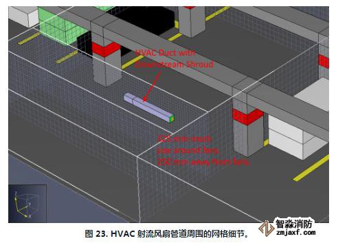 這整個部分的目的是展示使用FDS進行噴氣風扇(例如停車場)的可行性。根據(jù)我們在上一篇中學到的知識,我們將使用帶有下游護罩的HVAC管道或具有短護罩的速度塊建模的噴氣風扇的相對粗網(wǎng)格。